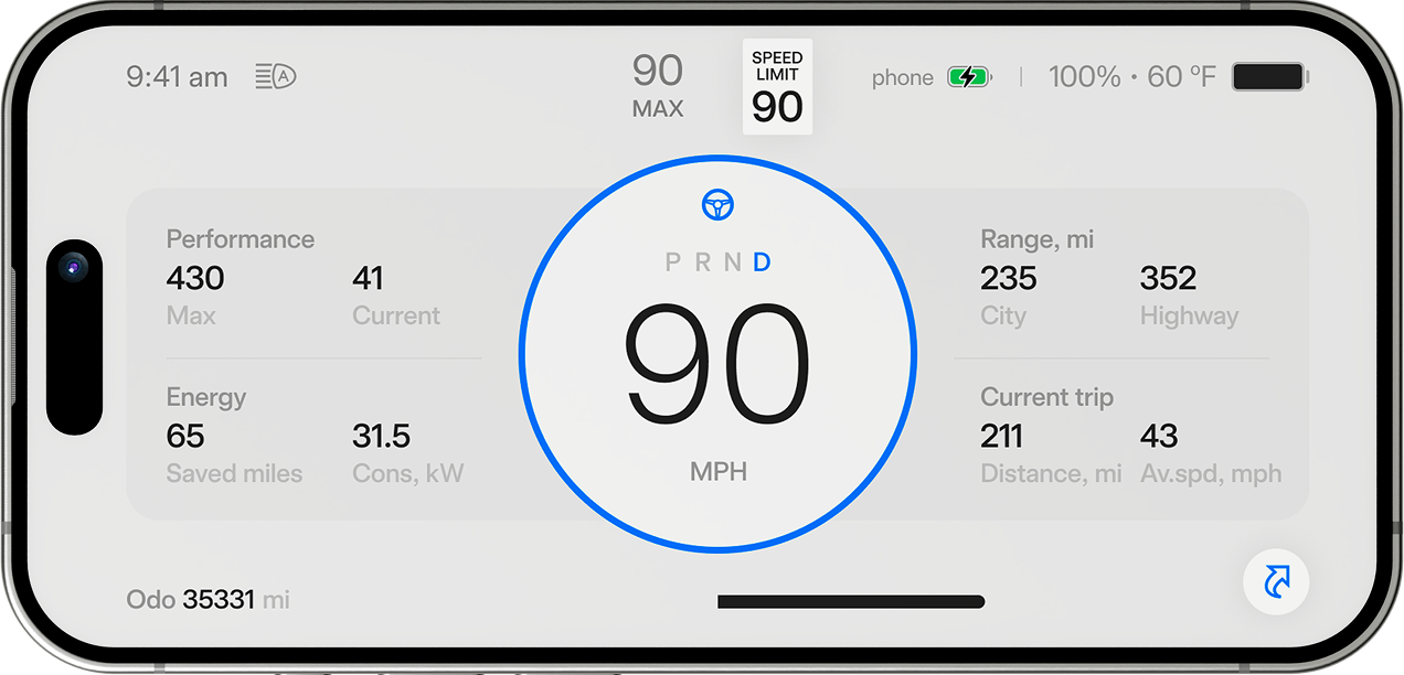 Customize regenerative braking strength to reduce or eliminate sudden traction loss on slippery roads. This feature lets you adjust braking to match your driving conditions.