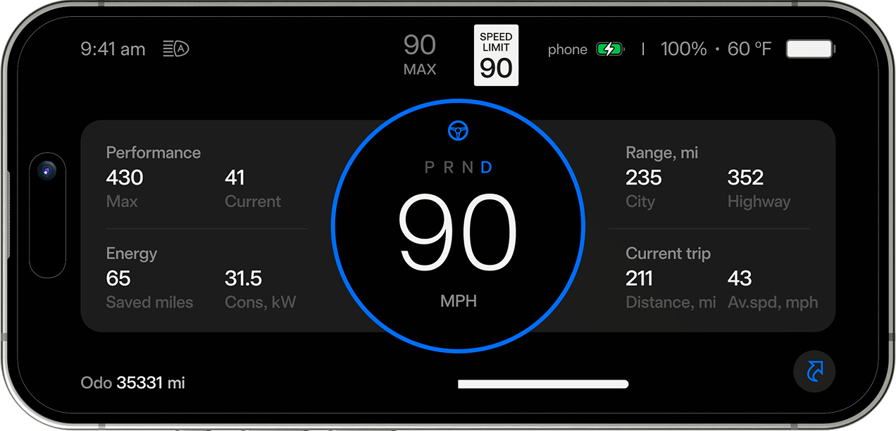 Customize regenerative braking strength to reduce or eliminate sudden traction loss on slippery roads. This feature lets you adjust braking to match your driving conditions.