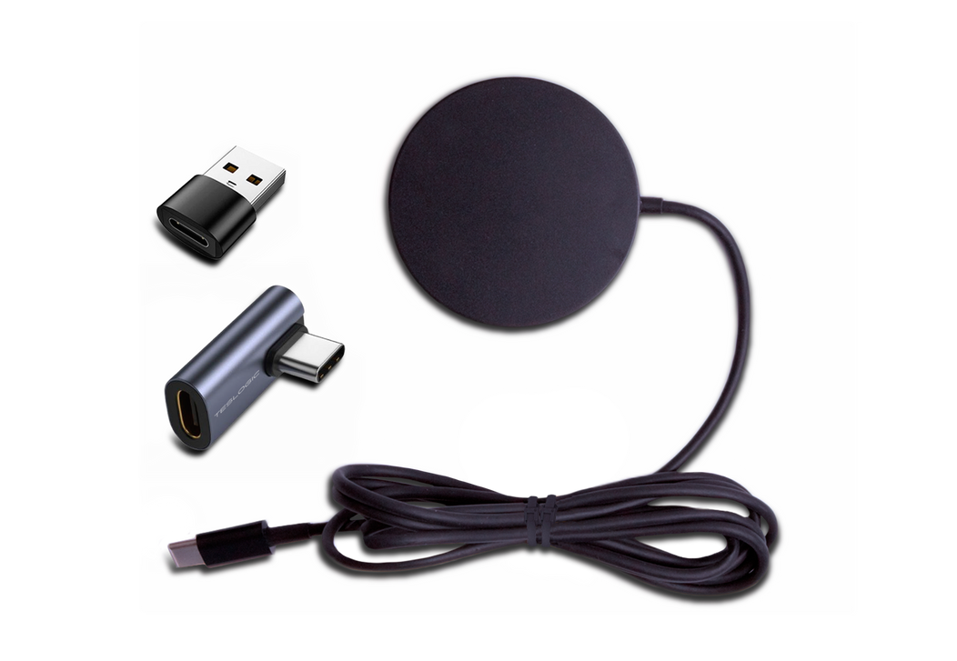 A convenient addition to the Screenmate Dash kit. This magnetic charger installs on a phone holder (which is included in the kit) instead of a magnet. It is compatible with the iPhone 12 and above, as well as any phone that supports wireless charging (when using the included magnetic ring).